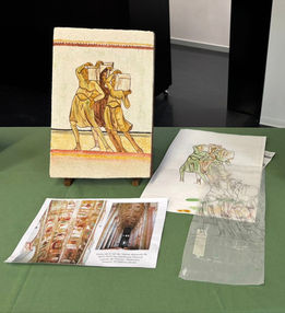 Pigments sur tissu (gauche). Gouache et pigments sur toile (centre). Pigments sur enduit frais à la chaux (droite).