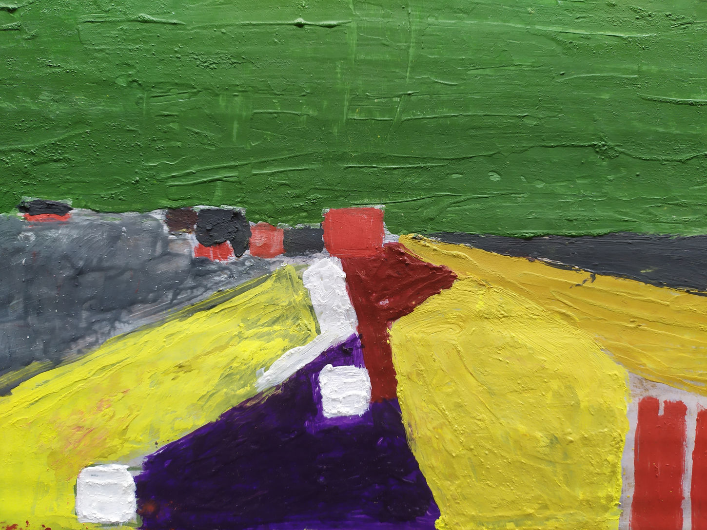 "Les mirabelles, quand elles murissent, prennent la couleur des abricots" (en haut). Interpretation de "Sicile" de Nicolas de Staël (en bas). Pigments et caparol sur carton.